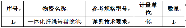 本次招標(biāo)為行唐縣第二污水處理廠大修項(xiàng)目一體化纖維轉(zhuǎn)盤濾池采購。采買單位為河北誠乾環(huán)保工程有限公司,資金來自企業(yè)自籌,出資比例為100%?,F(xiàn)采用邀請(qǐng)招標(biāo)方式對(duì)一體化纖維轉(zhuǎn)盤濾池進(jìn)行招采,特邀請(qǐng)各單位參加投標(biāo)。